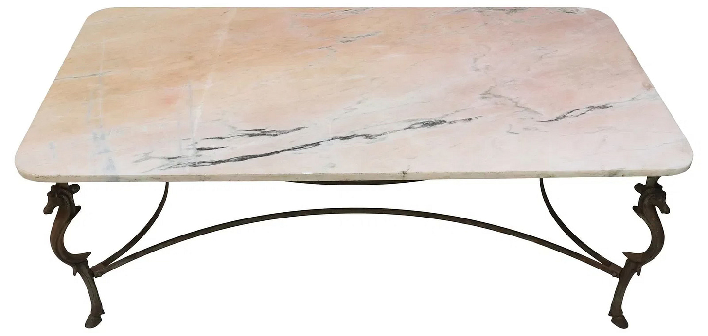 MANNER OF GILBERT POILLERAT (D. 1988) FRENCH MARBLE-TOP CAST IRON TABLE, 78.75"L · Starting Bid $800 · Austin Auction Gallery · May 18, 2025