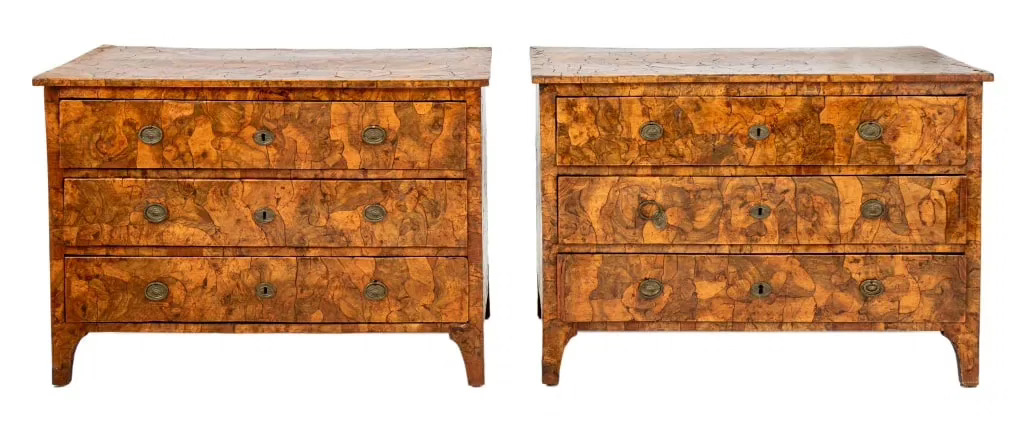 North Italian Walnut Commodes, 18th C., Pair · Starting Bid $1,000 · Auctions at Showplace · June 5, 2025